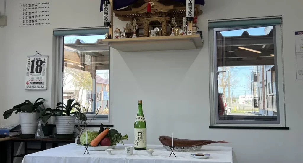 本年度の事故や怪我等なく工事を収められるように、江別の総鎮守である江別神社の宮司にお祓いをしていただきました。